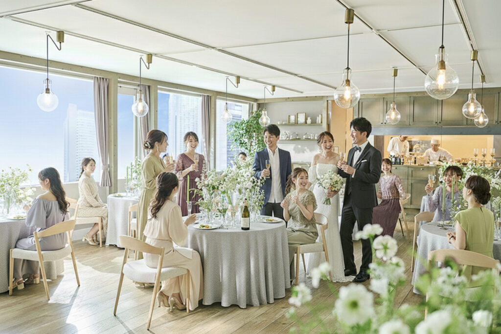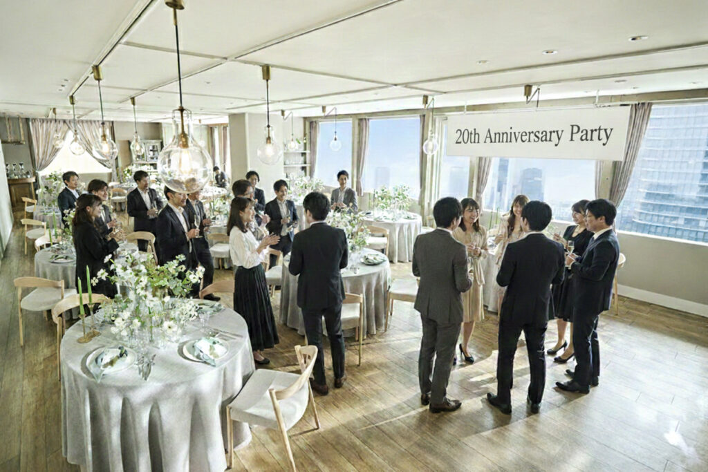 ビジネスのご縁を深める交流の場に。フォトブースでの記念撮影、贈呈ギフトのご用意も可能です。結婚式場ならではの上質な空間とおもてなしで、印象に残るひと時を