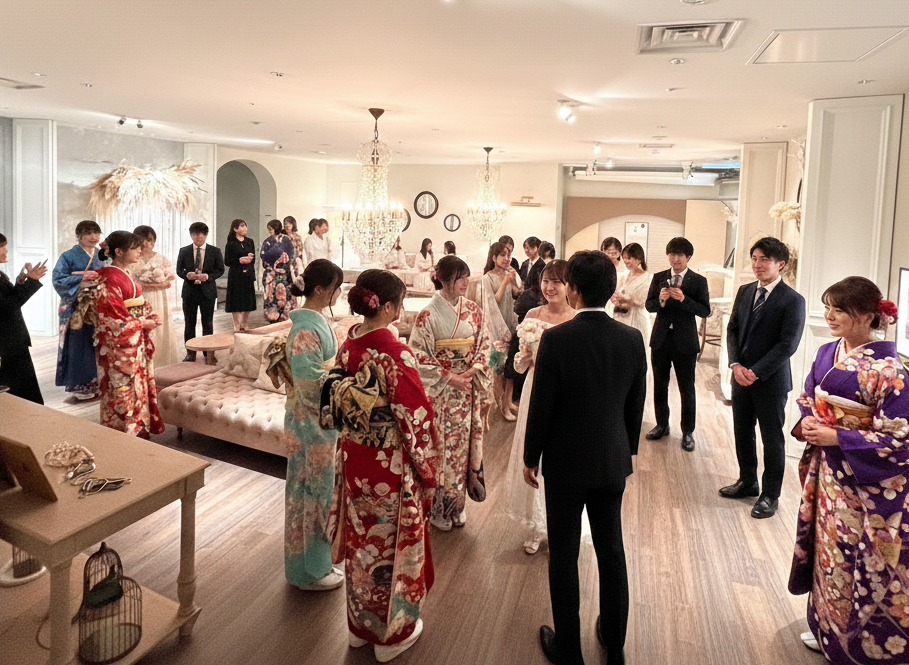 ビジネスのご縁を深める交流の場に。フォトブースでの記念撮影、贈呈ギフトのご用意も可能です。結婚式場ならではの上質な空間とおもてなしで、印象に残るひと時を