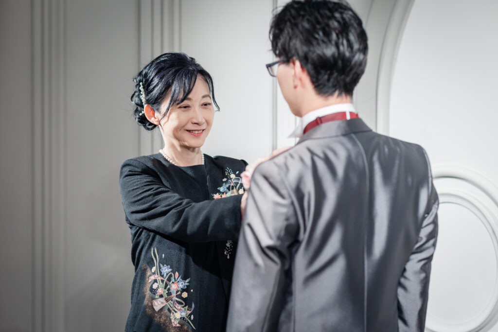 挙式のはじまりは、新郎のお母様によるジャケットセレモニーから。