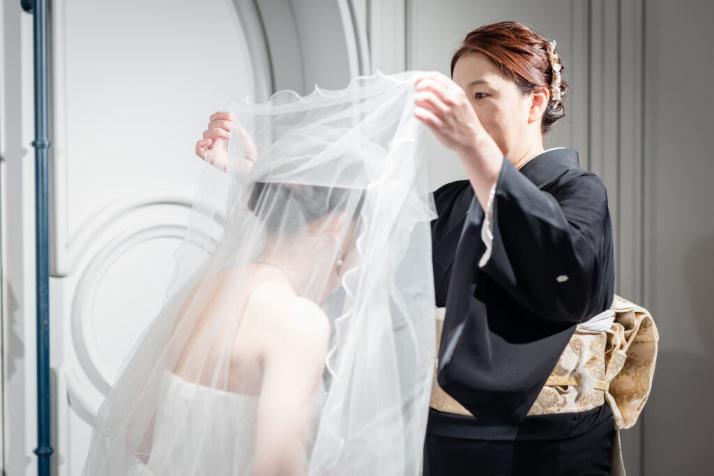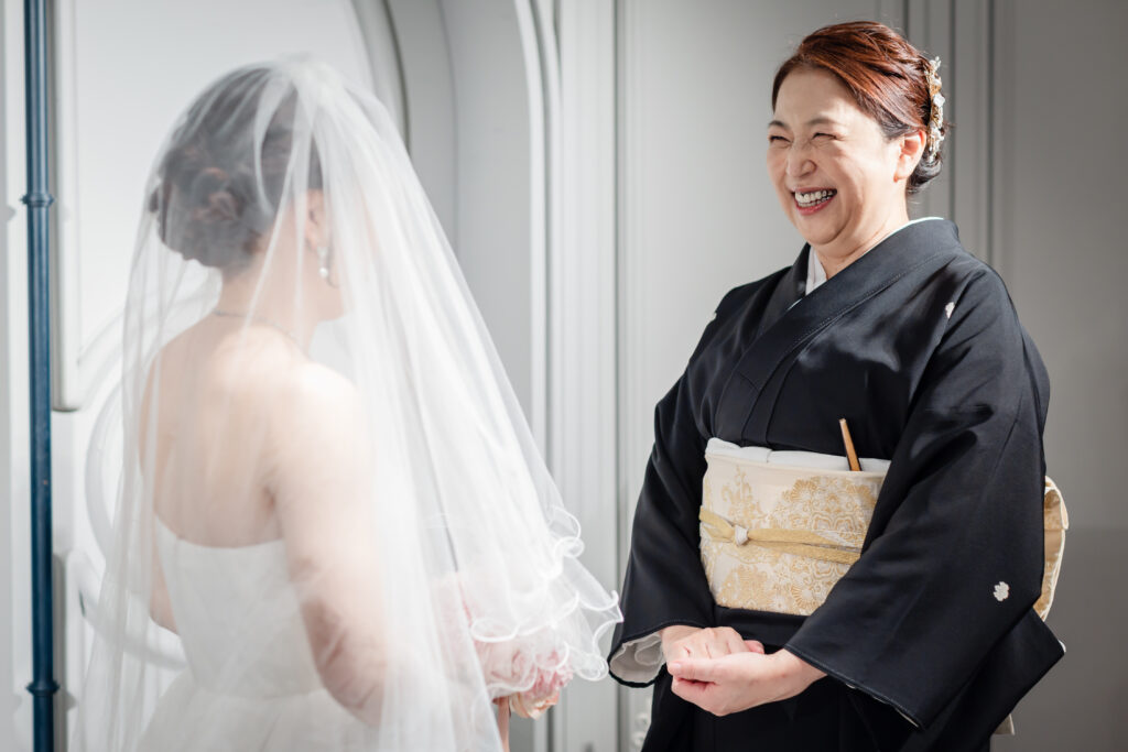 お母様によるベールダウンの際には、明るい笑顔の中に娘を想う深い愛情がにじみ、
