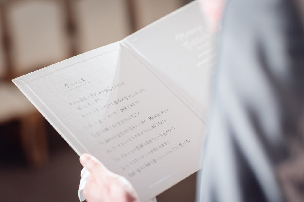 お揃いになったおふたりで読み上げた誓いの言葉。