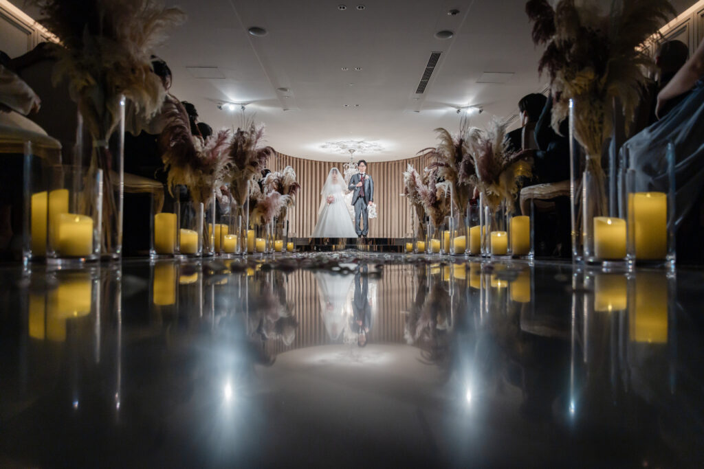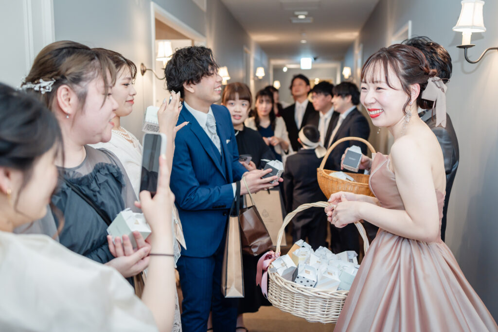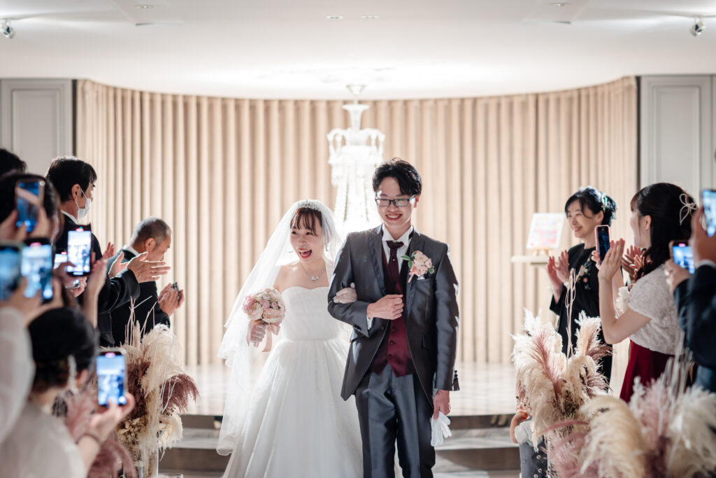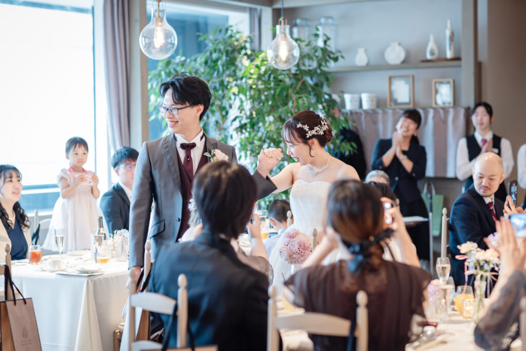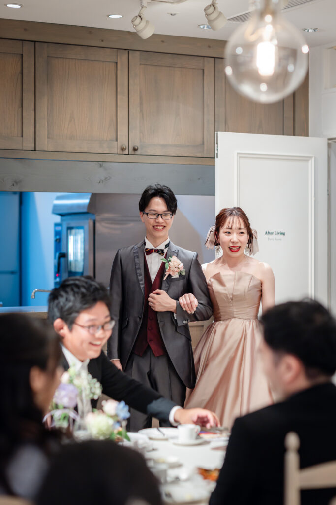 扉の向こうから姿を現された瞬間、特に新婦様側のゲストの皆さまからは「わあっ!」と感嘆の声が上がり、