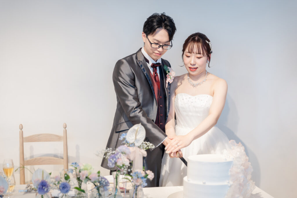 おふたりのもとへ運ばれたのは、ご見学の頃から一番こだわっていらっしゃったウェディングケーキ。