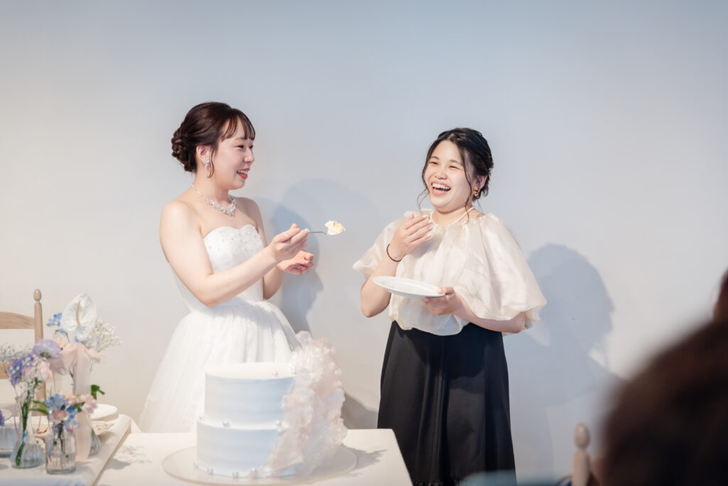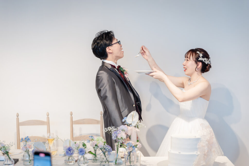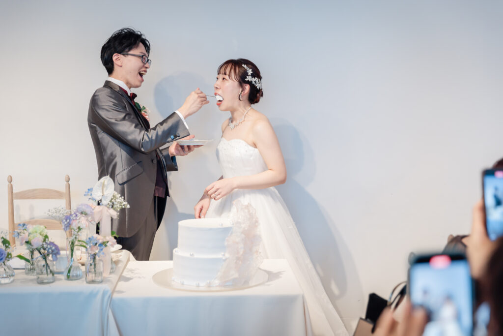 ケーキ入刀のあとは、ファーストバイトで会場がさらに盛り上がります。