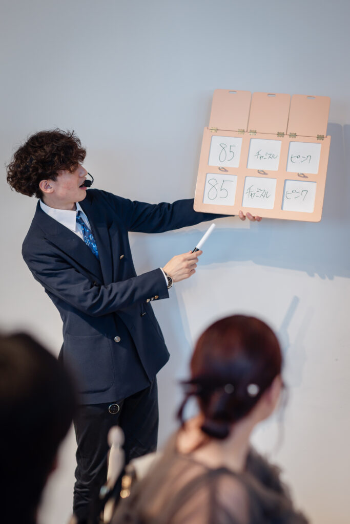 お色直しのドレスとタキシードの色を予想して参加できる「色当てクイズ」のコーナーでは、