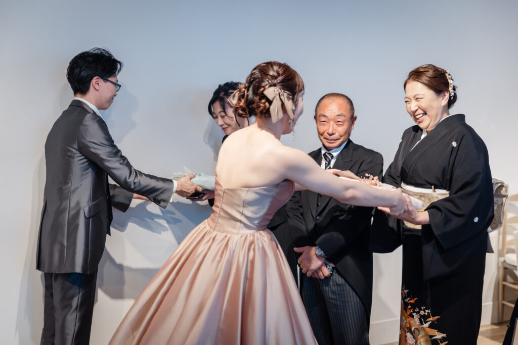 「こんなに重たかったっけ?」と問いかける親御様に、新郎新婦様も頷き応えます。