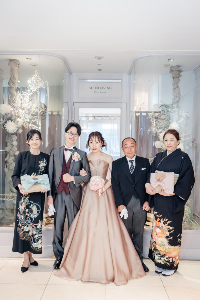 そうして新郎新婦様と親御様は皆様の前にお揃いになられ、